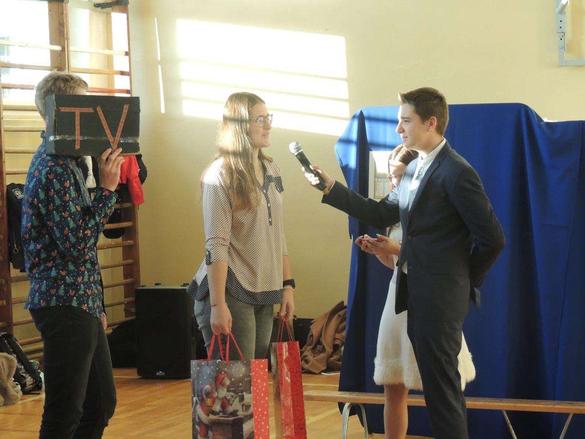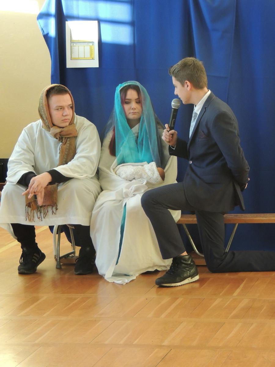 Uczniowie klas Liceum i Technikum pod kierunkiem pani Doroty Skowrońskiej z zaangażowaniem i pasją odegrali swoje role przybliżając istotę i sens zbliżających się świąt Bożego Narodzenia.