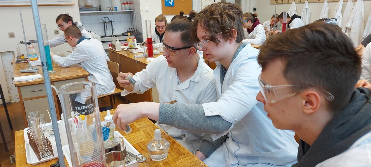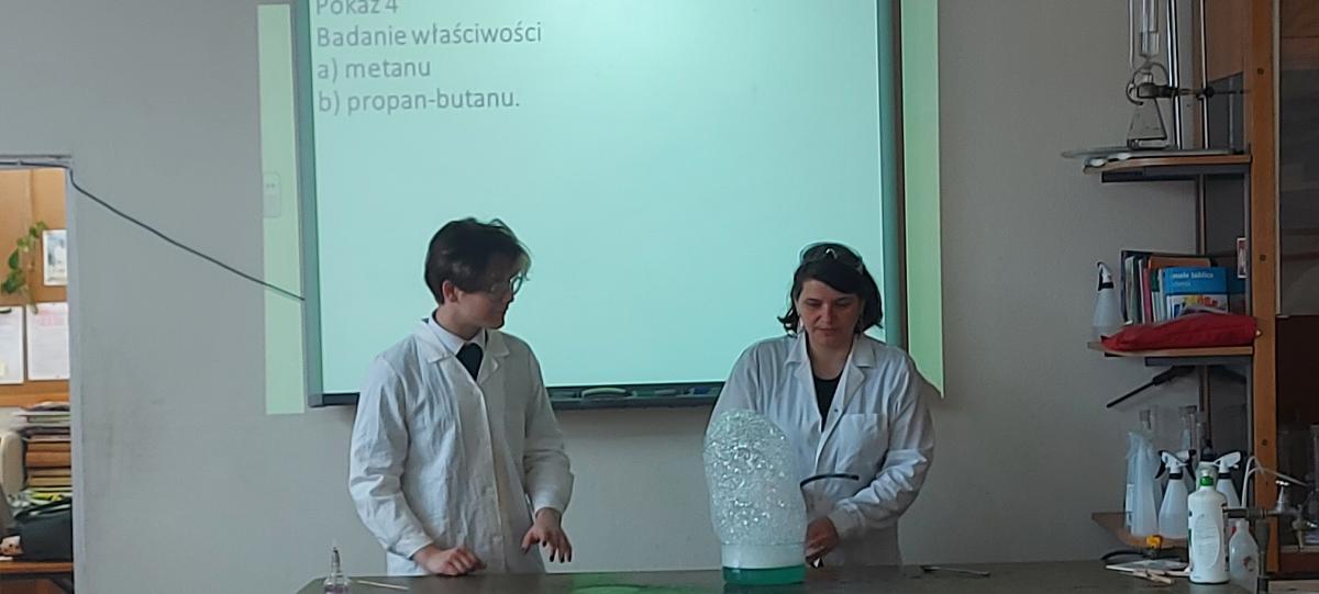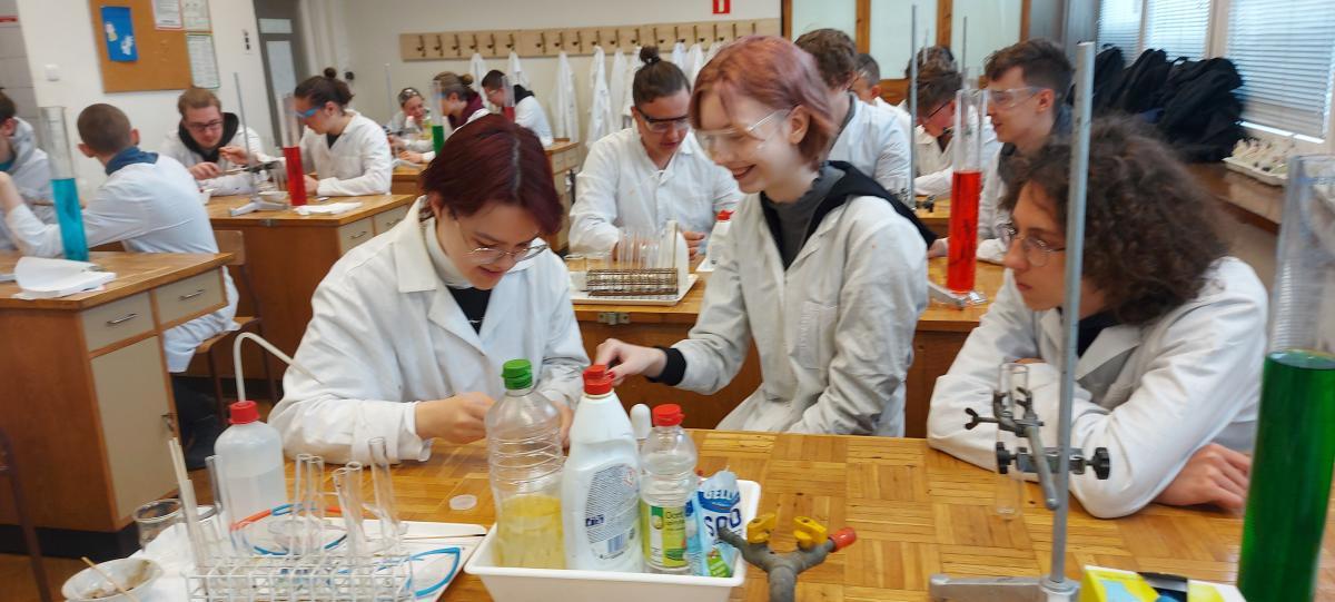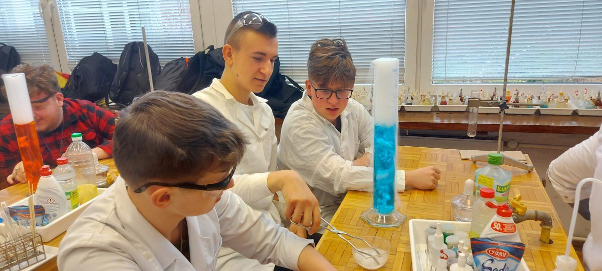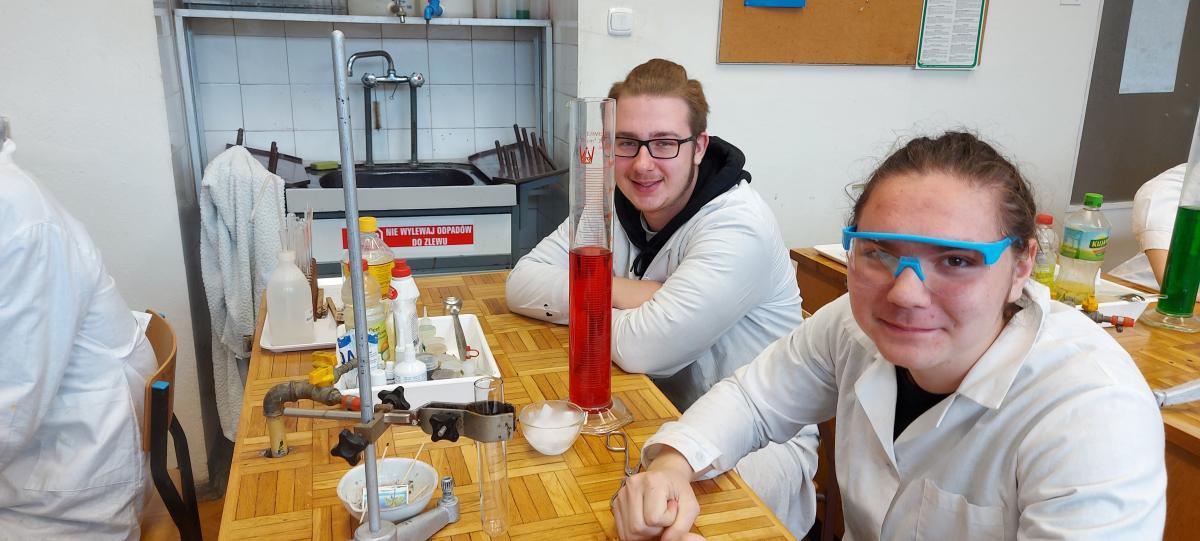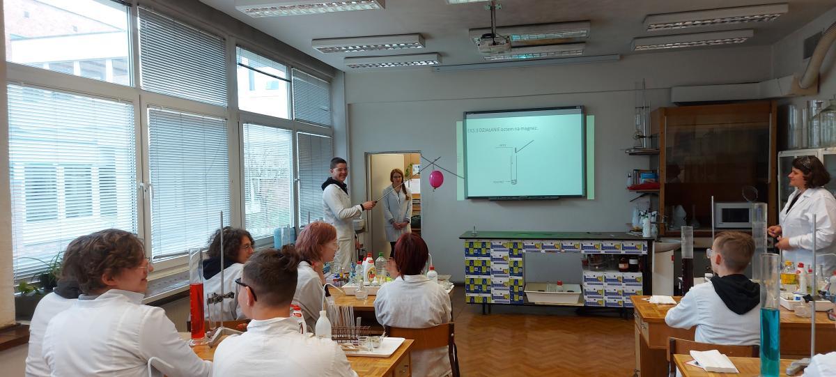 W piątek 22 kwietnia uczniowie klasy 2TIP uczestniczyli w warsztatach chemicznych w Katedrze Chemii Analitycznej i Spektroskopii Stosowanej na Wydziale Chemii UMK. Pod okiem mgr Agaty Szumery i mgr Jakuba Szumery samodzielnie wykonywali eksperymenty mające na celu identyfikację otaczających nas gazów takich jak: tlen, wodór, dwutlenek węgla, para wodna. Zbadali również właściwości metanu i propanu-butanu. Było to doskonałe uzupełnienie wiedzy zdobytej w szkole.