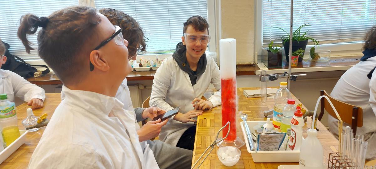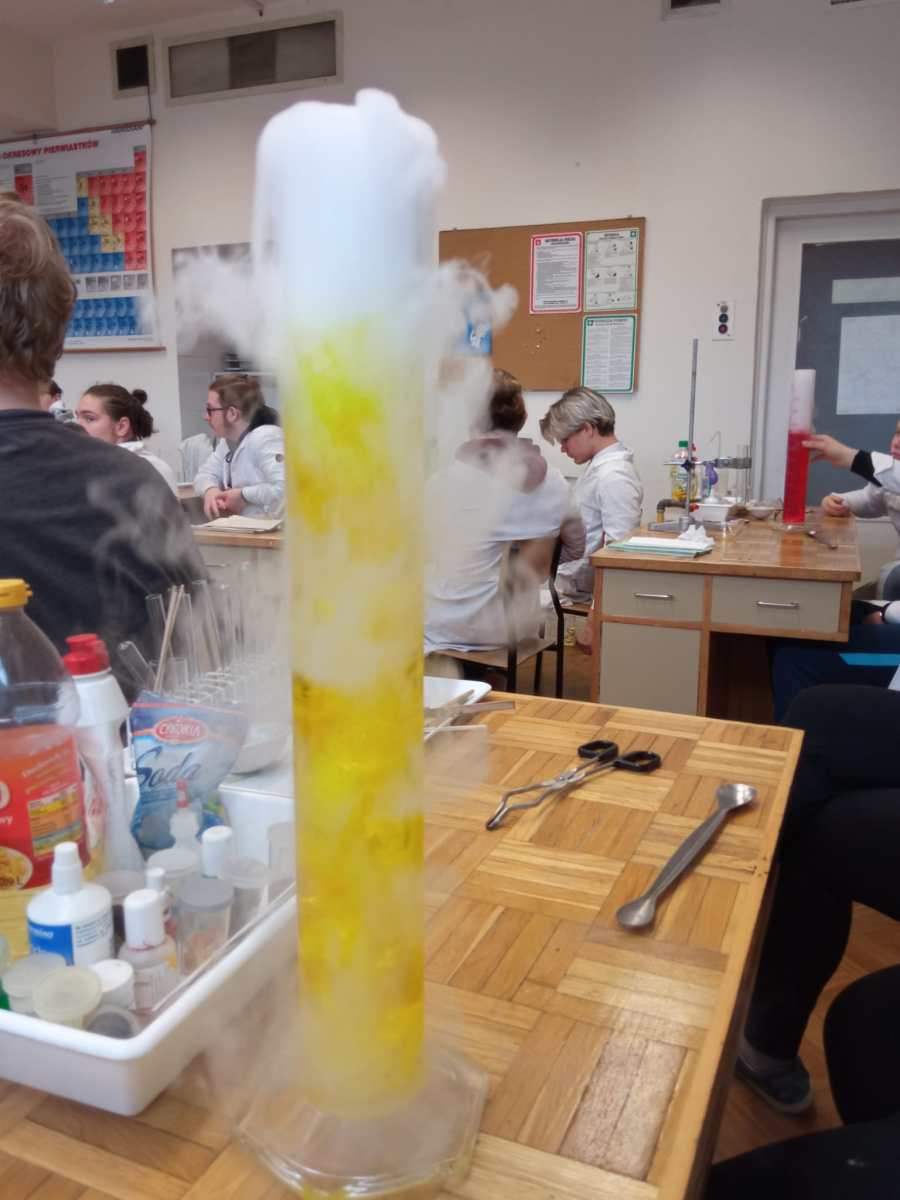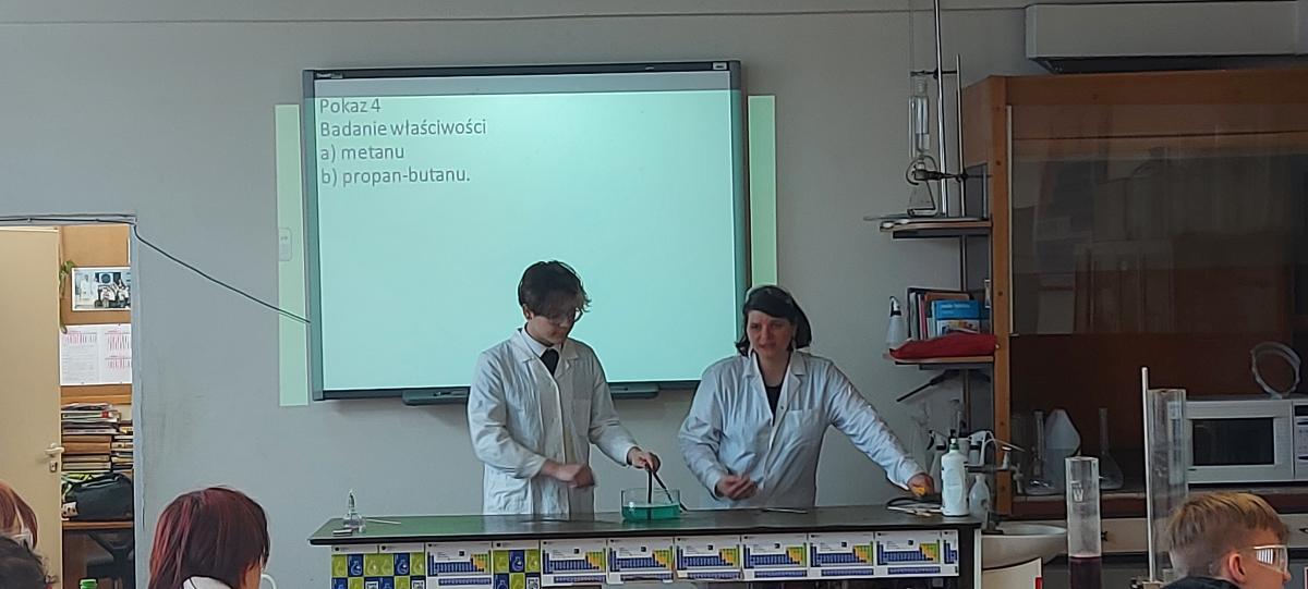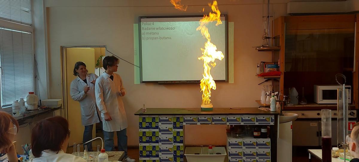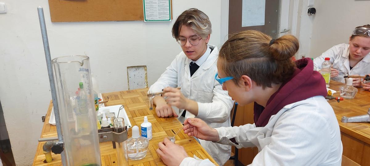 W piątek 22 kwietnia uczniowie klasy 2TIP uczestniczyli w warsztatach chemicznych w Katedrze Chemii Analitycznej i Spektroskopii Stosowanej na Wydziale Chemii UMK. Pod okiem mgr Agaty Szumery i mgr Jakuba Szumery samodzielnie wykonywali eksperymenty mające na celu identyfikację otaczających nas gazów takich jak: tlen, wodór, dwutlenek węgla, para wodna. Zbadali również właściwości metanu i propanu-butanu. Było to doskonałe uzupełnienie wiedzy zdobytej w szkole.
