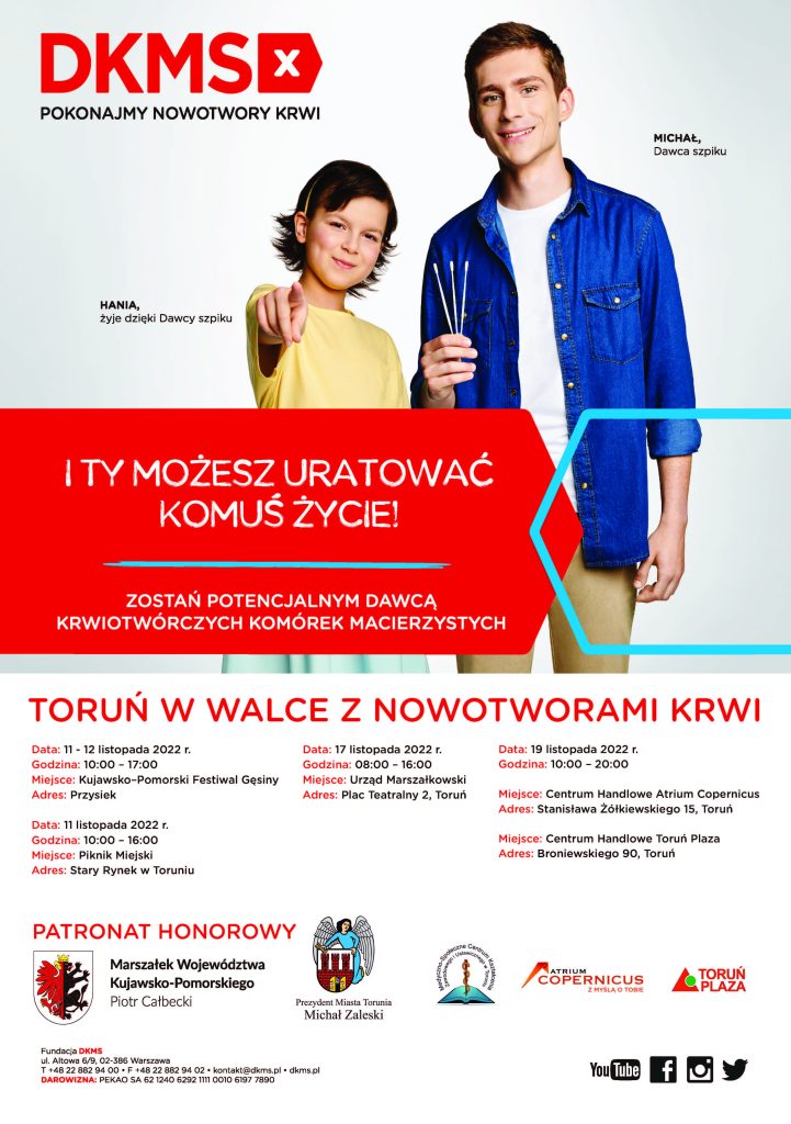 Na co dzień setki Pacjentów boryka się z chorobą nowotworową krwi i poszukuje swojego Dawcy niespokrewnionego. Wielu z nich go znajduje. Wielu jednak wciąż na niego czeka. To właśnie z myślą o tych Pacjentach baza niespokrewnionych, potencjalnych Dawców szpiku musi być cały czas powiększana. Torunianie mogą dać im szansę na powrót do zdrowia.