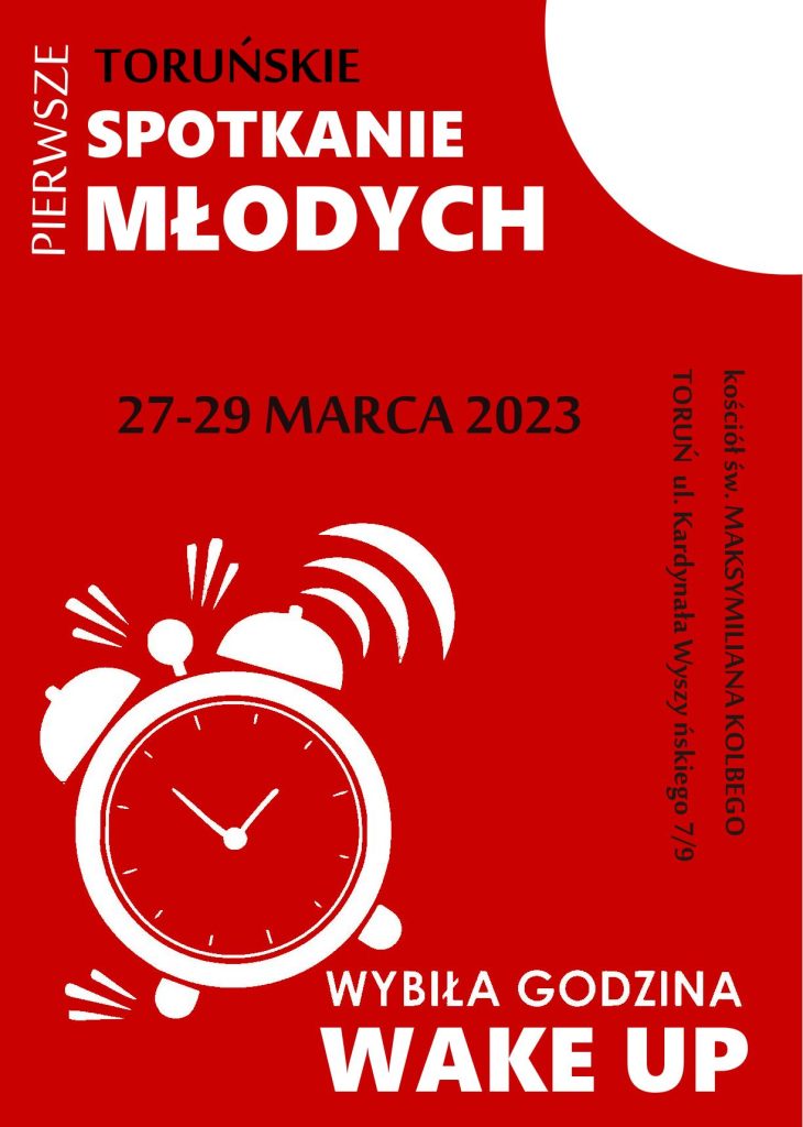 Rekolekcje szkolne (czyli Toruńskie Spotkanie Młodych) odbędą się w dniach 27 – 29 marca w kościele pw. św. Maksymiliana Kolbego na Rubinkowie (ul. Wyszyńskiego 7).